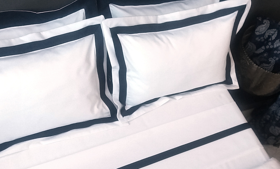 The Midnight colour palette in our Signature Collection brings the deepest blue tones into the bedroom, at once masculine and elemental, yet always soothing. We add this colour into the details such as oxford borders on pillowcases and duvet covers, or as double satin stitch detail to create beautiful bedding with just a touch of colour. The result is a classic, bold look and feel in the bedroom.