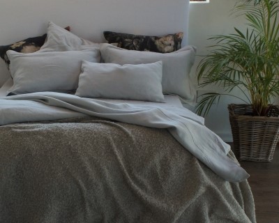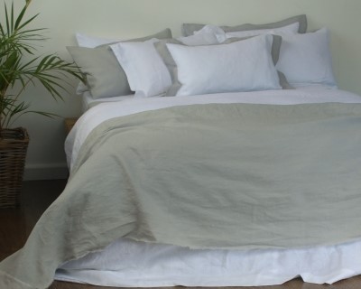 Bring a meditative calm and quiet to your bedroom with our luxurious flax linen in Mist.